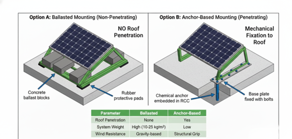 | Parameter | Ballasted Mounting | Anchor-Based Mounting |