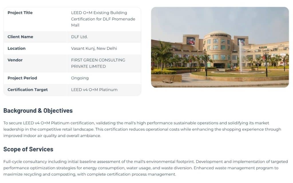 DLF Promenade Mall in Vasant Kunj, New Delhi, is actively pursuing the prestigious LEED v4 O+M Platinum Certification, solidifying its position as a leader in sustainable retail. This ongoing initiative, in partnership with sustainability consultants FirstGreen Consulting Pvt Ltd. , DLF’s commitment to high-performance, sustainable operations.