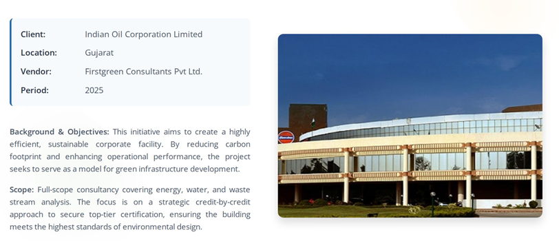 To bring this vision to life, IOCL has partnered with Firstgreen Consultants Pvt. Ltd., one of India’s leading green building consultancy firms. The consultancy is providing a full-spectrum service including performance analysis, sustainability strategy development, and IGBC submission management.